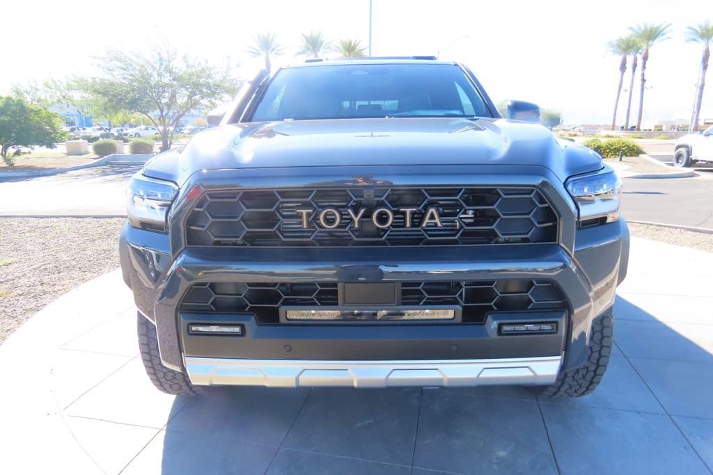 - Black "toyota" heritage grille, door handles, and overfenders; color-keyed mirror caps and rear spoiler; black "trailhunter" and "4runner" badges.