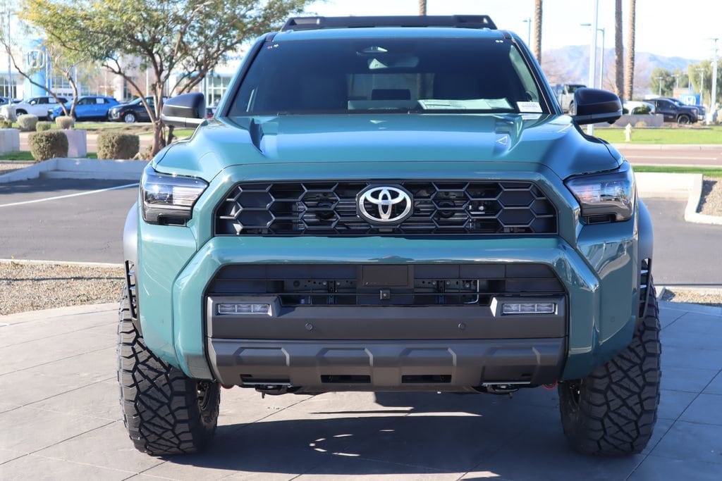 - Black honeycomb-style grille, mirror caps, door handles and overfenders; color-keyed rear spoiler; black "trd off road" and "4runner" badges.